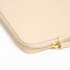 - Secure luxurious light gold hardware and padded leather zipper pull
